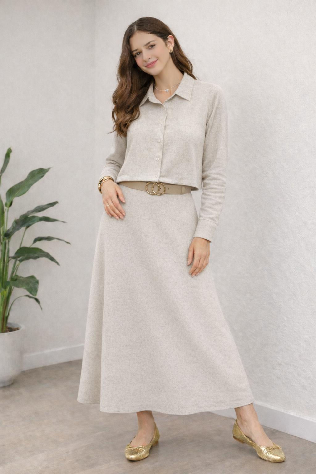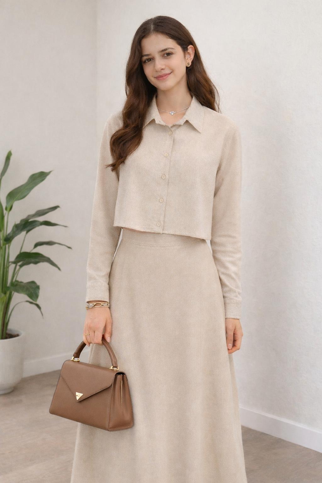 Oatmeal Linen Skirt and Blouse